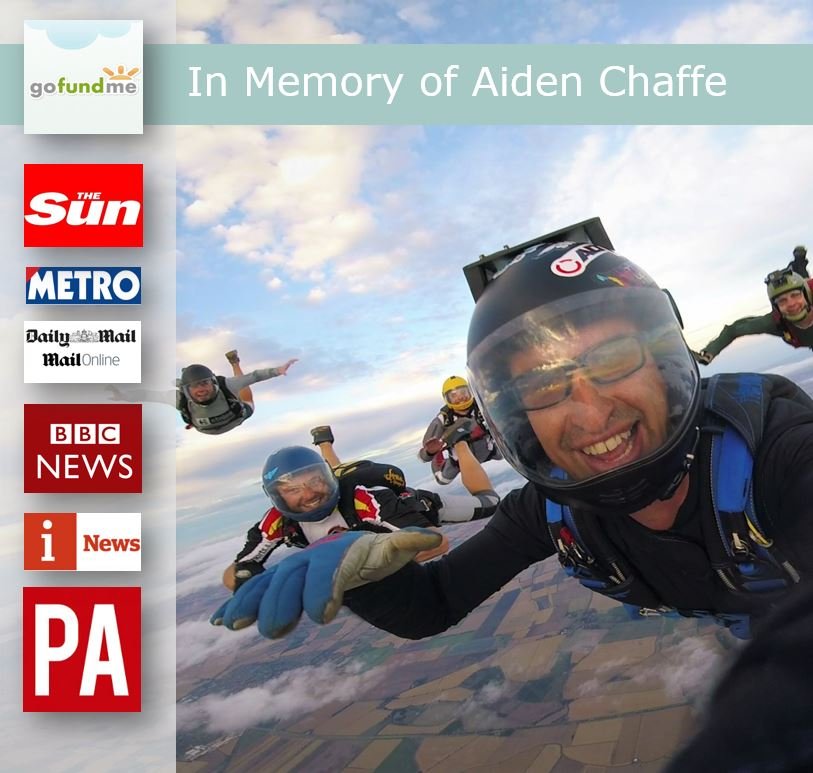 The experienced, professional skydiver was on a training exercise when he misjudged a ‘swooping’ manoeuvre and landed too low and too hard and very sadly died on impact. Aiden previously had made over 1000 jumps, and was employed as a tandem skydiving instructor, working with his father Bryn Chaffe (54), from Teeside who is also a professional skydiver.