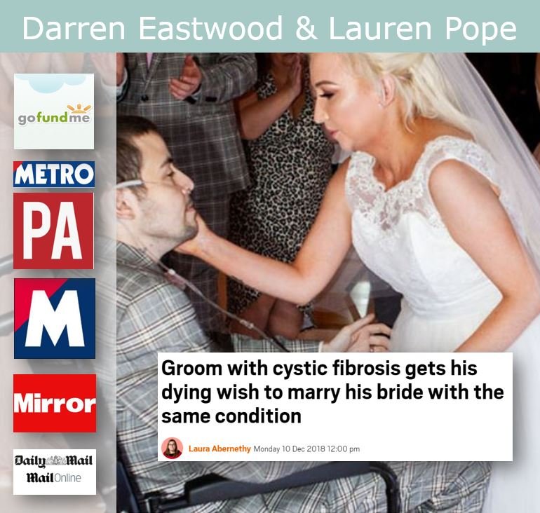 Darren and Lauren met in Royal Brompton hospital where they were both being treated for cystic fibrosis. Despite the risks of cross infection and advise from medical staff not to mix, they fell head over heels for each other and decided to marry.