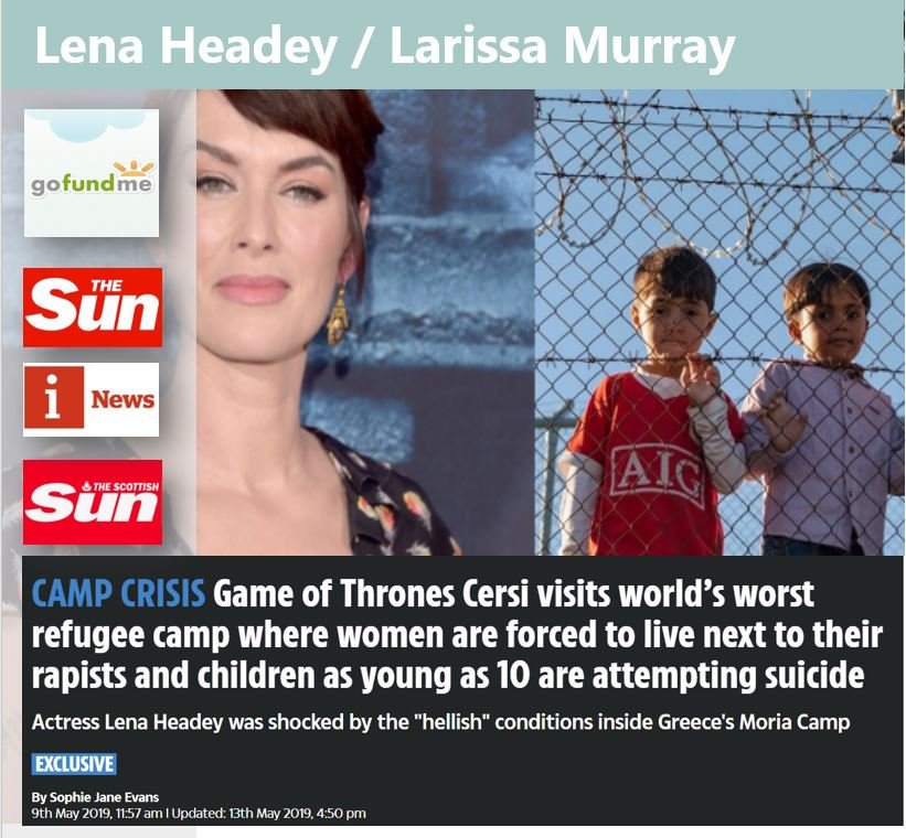 A HEARTFELT GoFundMe appeal to fund a ‘Safe Space’ for refugee mothers and babies in the notorious Moira Refugee Camp in Greece was backed by Lena Headey, aka Cersei Lannister from Game of Thrones and friends of the star both on and off the hit TV show.