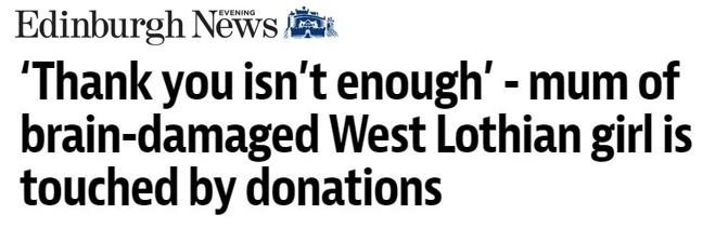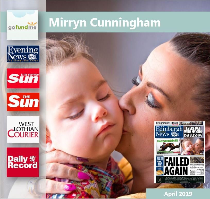 The Gofundme page set up by little Mirryn’s mum, Vicky Cunningham, smashed it’s target after we secured a front page splash on the Edinburgh Evening News and multiple national articles.
