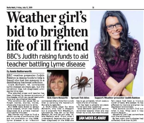 I identified that the appeal was set up by the Scottish celebrity weather presenter and former singer, Judith Ralston, for her friend Clare with Lyme disease and worked closely with the pair to arrange interviews and maximise PR opportunities.