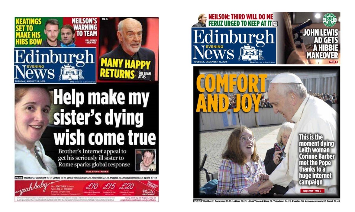 One of my personal highlights, must be securing two front page splashes for a fundraising campaign which allowed a dying woman to visit the Vatican and be blessed by The Pope.
